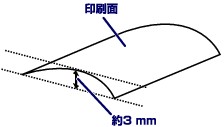 • ご使用の用紙によっては、反りのない用紙を使用していても、用紙が汚れたり、うまく送られなかったりすることがあります。その場合は、印刷する前にあらかじめ3 mm(0.1 inch)程度反りをつけてから印刷してみてください。印刷の結果が改善される場合があります。