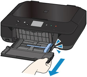 Laikydami dešinįjį priekinio dangčio fiksatorių iki galo ištraukite kasetę.