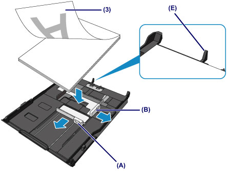 右の用紙ガイド(B)を動かし、用紙の両端に合わせます。