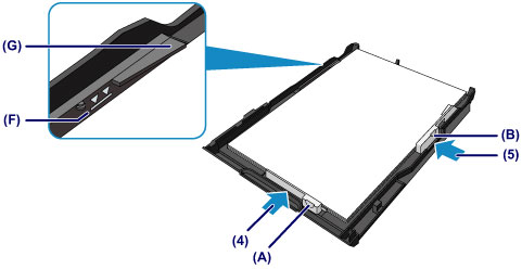 - 用紙は用紙ガイドのツメ(G)より下にセットしてください。