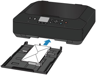 封筒の印刷したい面を下にして、カセット(下段)の中央に合わせて封筒をセットします。