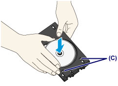- セットするときにプリンタブルディスクの印刷面や反射板(C)に触れないでください。