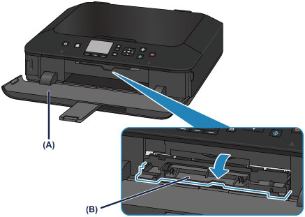 排紙トレイ(A)の左右を持って、ゆっくり手前に開く
