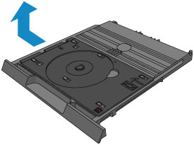 カセット(上段)の裏面に取り付けられたディスクトレイを横にスライドさせ、そのまま持ち上げて取り外してください。