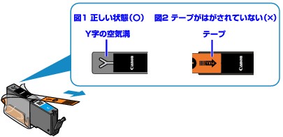 図2のようにテープが残ってY字の空気溝をふさいでいる場合は、テープをきれいに取り除いてください。