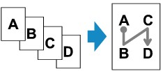 組み合わせて使用すると、8枚の原稿を1枚の用紙にコピーすることができます。このときは、用紙の両面にそれぞれ4枚の原稿がコピーされます。