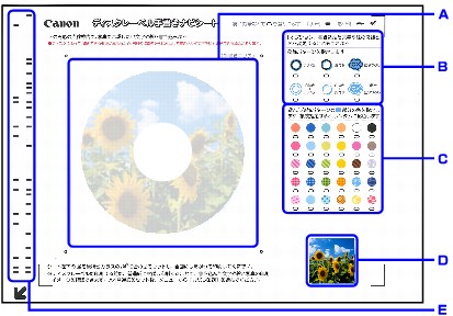 円形の枠の近辺に文字や絵を書くと、印刷のときに欠けることがあります。文字や絵は、枠の近辺には書かないことをお勧めします。