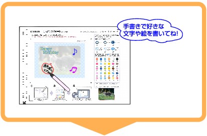 本製品から印刷される手書きナビシートを使って、メモリーカードに保存されている写真と手書き文字や絵を合成して印刷することができます。