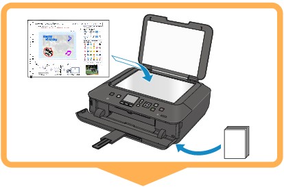 次に、手書きナビシートを原稿台ガラスに、印刷する用紙をカセット(上段)にセットします。