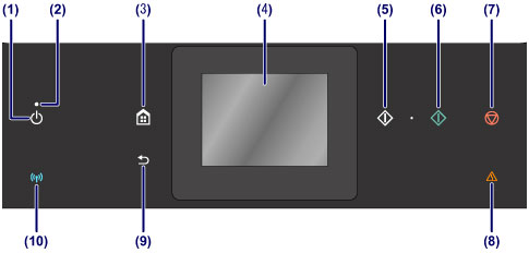 Displays messages, menu items, and the operational status. Directly touch the screen lightly with your finger tip to select a menu item or displayed button. You can also preview photos on a memory card before printing.