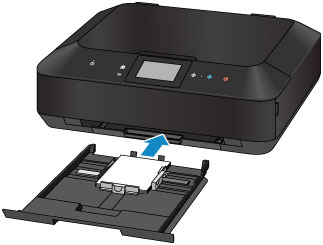 (3) Papir naložite S STRANJO ZA TISKANJE, OBRNJENO NAVZDOL, in ga postavite na sredino kasete (zgornje).