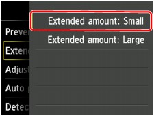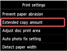 V tem razdelku je opisan postopek spreminjanja nastavitev na zaslonu Nastavitve naprave (Device settings). Kot primer je prikazano določanje možnosti Količina razšir. kopiranja (Extended copy amount).
