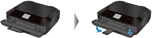 Pridržite izhodni pladenj za papir in počasi premikajte podaljšek izhodnega pladnja, dokler se ne zaskoči.