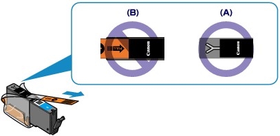 تأكد من إزالة الغطاء الواقي بأكمله وكشف فتحة الهواء الموجودة على شكل حرف "Y"، كما هو موضح في (A).
