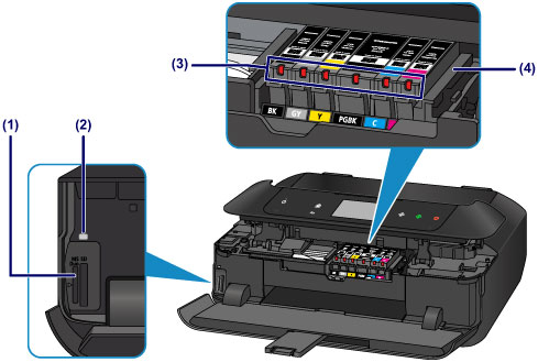 - (4) spausdinimo galvutės laikiklis