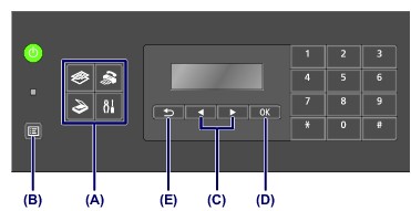Jei įrenginiui veikiant kopijavimo, fakso ar nuskaitymo režimu paspaudžiamas mygtukas Meniu (Menu) (B), suteikiama prieiga prie tuo režimu galimų funkcijų ir parametrų parinkčių.