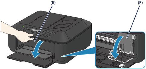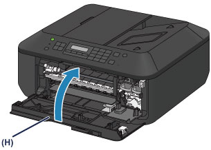 Uždarykite popieriaus išvesties dangtį (H).