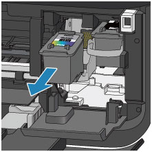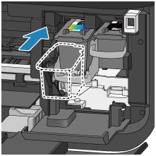 Spalvoto rašalo kasetę FINE reikia įdėti į kairįjį lizdą, o juodo rašalo kasetę FINE – į dešinįjį lizdą.