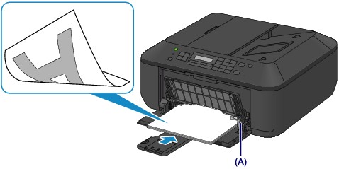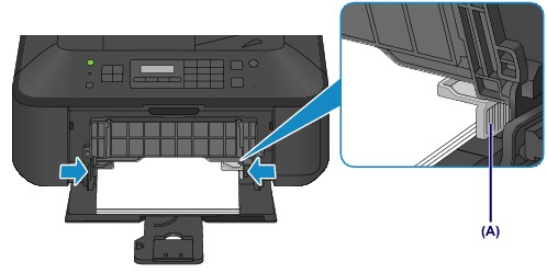 (4) Paslinkite dešinįjį popieriaus kreipiklį (A), kad sulygintumėte popieriaus kreipiklius su abiem popieriaus šūsnies kraštais.