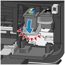 Spalvoto rašalo kasetę FINE reikia įdėti į kairįjį lizdą, o juodo rašalo kasetę FINE – į dešinįjį lizdą.