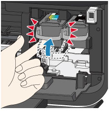 (1) Spauskite žemyn rašalo kasetės fiksavimo svirtelę kol ji užsifiksuos.