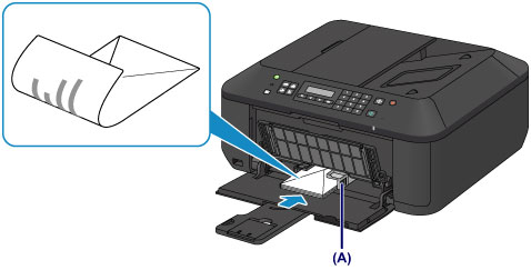 (4) Bīdiet labās puses papīra vadotni (A), lai izlīdzinātu papīra vadotnes ar abām aplokšņu malām.
