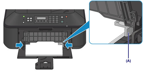 Slide the right paper guide (A) to align the paper guides with both sides of the paper stack.