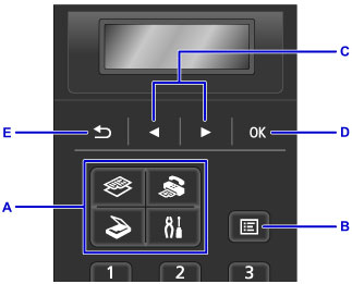 The mode button (A) on the operation panel allows you to switch between the copy mode, scan mode, fax mode, and setup menu screen.