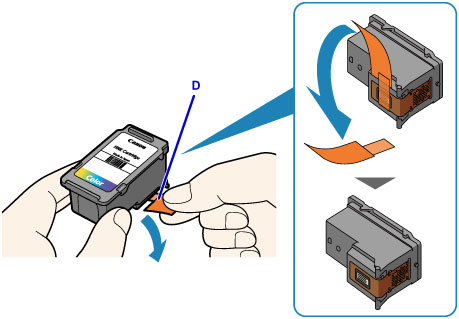 Išpakuokite naują kasetę FINE ir atsargiai nuimkite apsauginę juostelę (D).