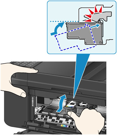 Svarbu- Vidinės įrenginio dalys gali būti išteptos rašalu. Keisdami kasetę FINE stenkitės neišsitepti rankų arba drabužių. Rašalą nuo vidinių įrenginio dalių galite nesunkiai nuvalyti popierine servetėle ar kt.