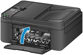 - Jei popieriaus išvesties dangtį paliksite atidarytą ilgiau nei 10 min., gali pajudėti kasetės FINE laikiklis ir užsidegti lemputė Įspėjimas (Alarm). Tokiu atveju uždarykite ir vėl atidarykite popieriaus išvesties dangtį.