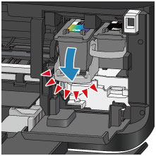 Spalvoto rašalo kasetę FINE reikia įdėti į kairįjį lizdą, o juodo rašalo kasetę FINE – į dešinįjį lizdą.