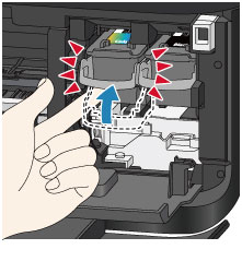 Kasetė FINE užfiksuojama vietoje, kai spragteli rašalo kasetės fiksavimo svirtelė.
