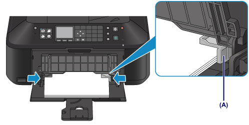 (4) Desno vodilo za papir (A) potisnite tako, da poravnate vodili z obema stranema svežnja papirja.