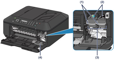 • Aplink dalis (A) esanti sritis gali būti aptaškyta rašalu. Tai neturi įtakos įrenginio darbui.