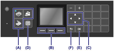 Na vsakem zaslonu načina lahko izberete različne funkcije ali spremenite nastavitve z gumbi Funkcija (Function) (B) ali gumbi