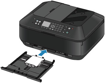 (3) Papir naložite S STRANJO ZA TISKANJE, OBRNJENO NAVZDOL, in ga postavite na sredino kasete (zgornje).