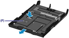 (3) Papir naložite S STRANJO ZA TISKANJE, OBRNJENO NAVZDOL, in ga postavite na sredino kasete (spodnje).
