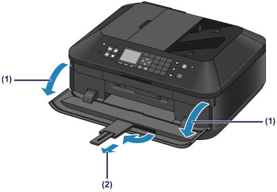 (2) Razširite oporo izhodnega papirja.