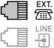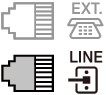 Ko povežete telefon z napravo, se prepričajte, da je naprava izklopljena, povežite en konec modularnega kabla v vhod zunanje naprave v bližini oznake »EXT.« na napravi, nato pa drug konec kabla povežite v vhod telefonskega priključka v telefonu.