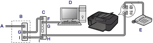 Če napravo povežete s telefonsko linijo neposredno/če povežete napravo z razdelilnikom xDSL: