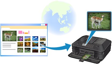 Можете да посетите сайт за споделяне на снимки в интернет (напр. CANON iMAGE GATEWAY и Picasa Web Albums), като използвате операционния панел на машината, и да отпечатвате снимки от онлайн фото албум (снимките се качват от други устройства, като например компютър).