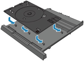 Sulygiuokite disko dėklo skylutes su kabliukais apatinėje kasetės (viršuje) pusėje ir paslinkite jį, kad pritvirtintumėte.