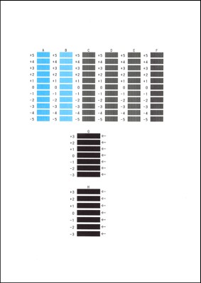 Jei sureguliavus spausdinimo galvutės padėtį automatiškai linijos išspausdinamos nelygiai arba spausdinimo rezultatai vis dar netenkina, spausdinimo galvutės padėtį sureguliuokite rankiniu būdu.