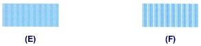 (E) Mažiausiai pastebimi vertikalūs dryžiai (F) Labiausiai pastebimi vertikalūs dryžiai |