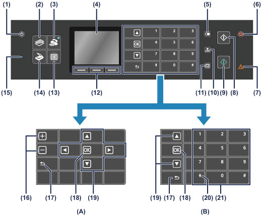 Šo pogu izvietojums atšķirsies atkarībā no tā, vai ir redzamas atlasīšanas/iestatīšanas pogas vai ciparu pogas. Ja ir redzamas ciparu pogas,