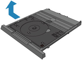 Potisnite pladenj za plošče na stran na zadnjem delu kasete (zgornje) in ga dvignite, da ga odstranite.
