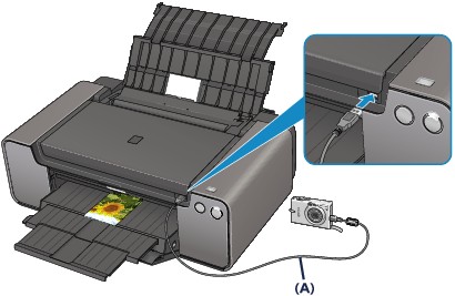 Свържете съвместимото с PictBridge устройство към принтера чрез USB кабел (A), препоръчан от производителя на устройството.