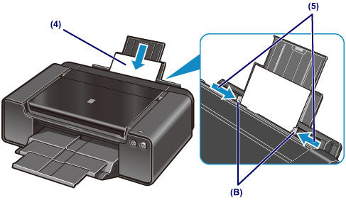 (5) Pastumdami popieriaus kreipiklius (B) sulygiuokite juos su popieriaus kraštais.