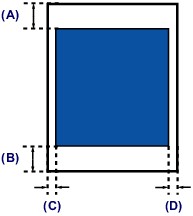 Če uporabljate papir za slike ali poseben papir, ki ga ni izdelala družba Canon, ni mogoče tiskati na območju 30 mm (1,18 palca) ali 35 mm (1,38 palca) od zgornjega in spodnjega roba strani. Če v gonilniku tiskalnika izberete velikost strani za papir za slike, se nastavi omejitev, ki preprečuje tiskanje na območju 30 mm (1,18 palca) ali 35 mm (1,38 palca) od zgornjega in spodnjega roba lista. Pred tiskanjem preverite območje tiskanja na zaslonu za predogled.